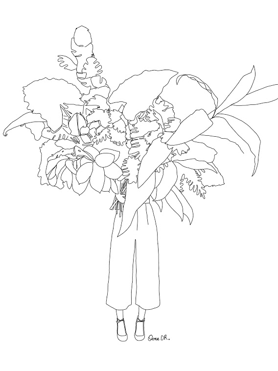 Tijdens het tekenen van het meisje met de planten zag ik hoe leuk de schets was en dus kwam ik op het idee om er ook een keurplaat van te maken. Zodat we elkaar kunnen inspireren om mooie dingen te maken. Want soms zit je eens in een "creatieve dip" om het zo te noemen. Een moment waarop je gewoon wilt beginnen met tekenen, schilderen of nog iets helemaal anders... maar niet goed weet wat of hoe. Dan kan een kleurplaat misschien helpen. Niet om iemand anders na te doen maar juist te kijken hoe je het zelf zou doen. In de kleuren die je het liefst ziet en het materiaal dat je het liefst gebruikt.